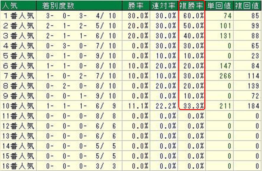 単勝5,0倍以上の1番人気の「勝率、連対率、複勝率」ってどのくらいなんだろう?
